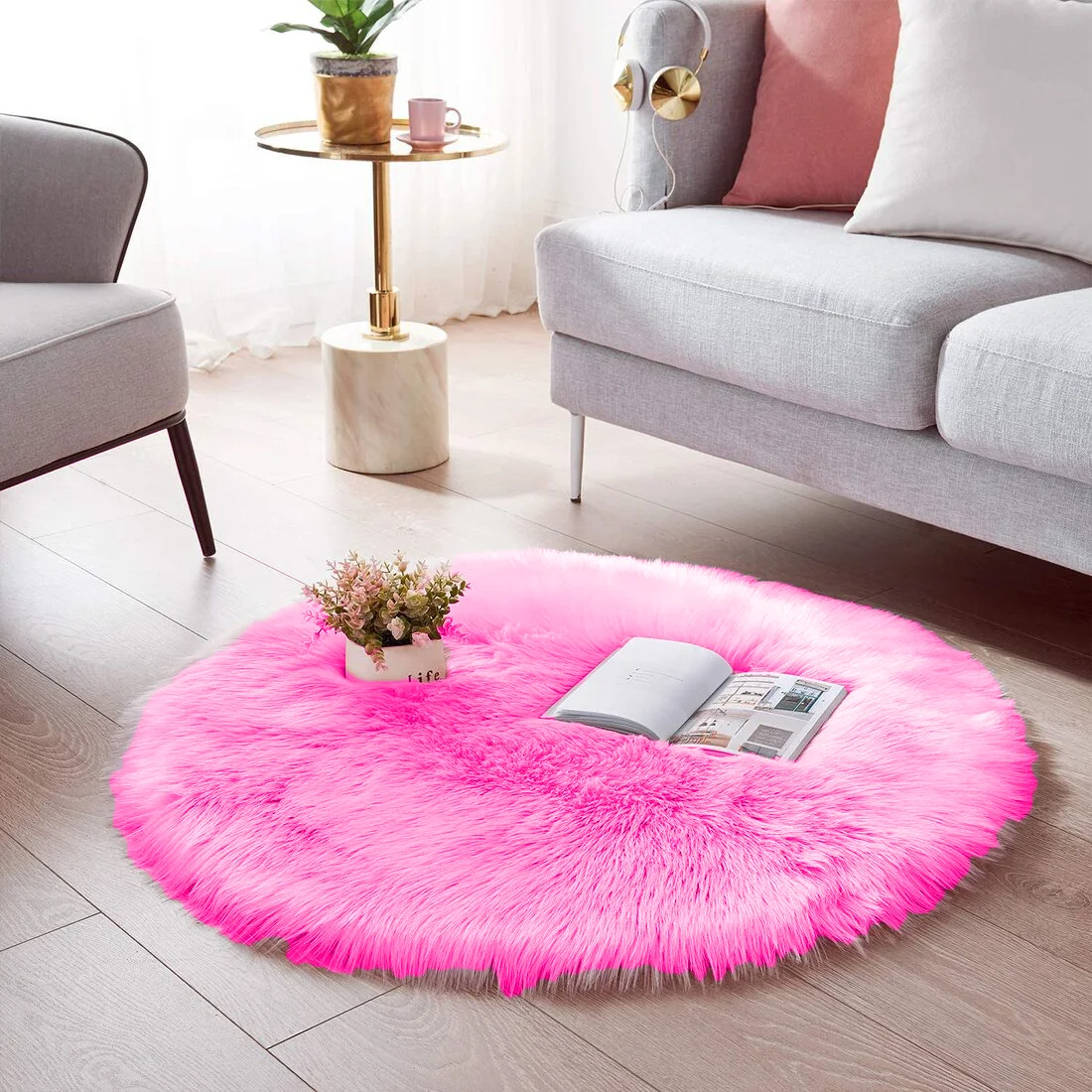 Rabbit Fur Ultra Soft Area Rugs Round Throw Floor Mat Circular Carpet for Bedroom Soft Circle Kids Play Mat for Nursery