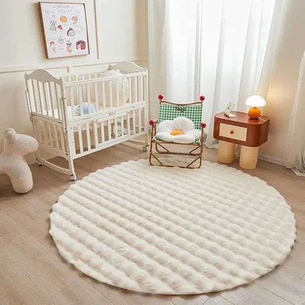 Rabbit Fur, Aesthetic Home Decor 3D Bubble Mat Fluffy Plush Shaggy Soft Runner Area Rugs, Christmas Fuzzy Carpet for Prayer, Living Room, Bedroom, Nursery Circle (Beige)